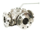 - nerezové trojcestné kulové kohouty v přírubovém provedení s ručním ovládáním pomocí páky